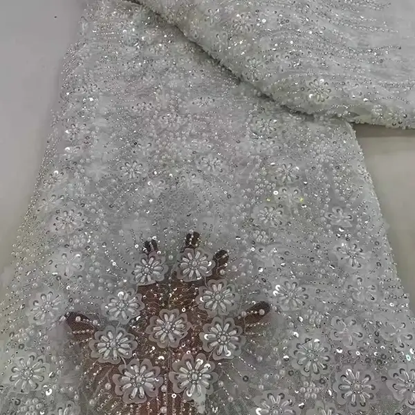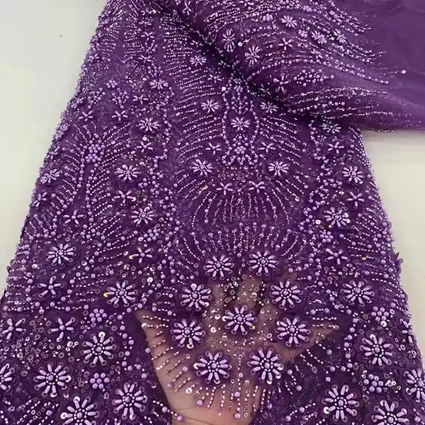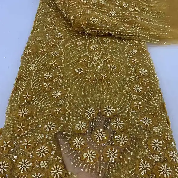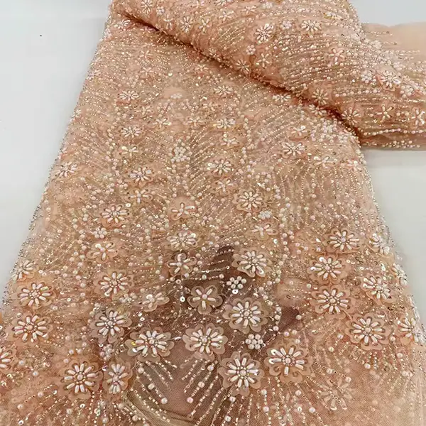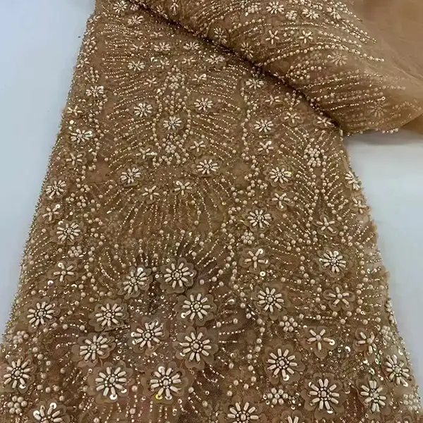 Luxuria gravibus factum plumarii Tulle Beads Lacus Mesh Beaded Fabricae featuring Intricate Beadwork et delicata lace. High-density suturis et manus-applicari grana creare luxuriosum textura, perfectum pro Sponsaeque togalum, vespera gere, et haute cuture. Elegans, candidus et premium qualis.