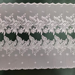 Picturem mesh Lacus Trim est delicata et intricata genus licio quod est saepe usus est sicut decorat accentu in vestimentis, accessiones et domum decor items. Hoc genus lace est creatus a SUTURA et apparatus embrooring in exemplum onto tenui iacuit Mesh fabricae. Percussarum potest accipere in variis formis, inter floralibus, geometric, vel abstracta consilia. Mesh fabricam praebet delicata et airyibus qualis ad licio, cum plumarii addit altitudinem et texture. Picture Mesh Lacus Trim est communiter usus est ut in ornatus super vestes ut nuptialem coquit, vespera togis et lingerie. Est etiam a popularibus arbitrium ad addendo tactus elegantiae ad domum decor items talis ut aulaea, mensa, et exornantur cervicalia. Poembro Mesh Lace Trim venit varietate colorum et widths, permittens ad amplis consilio possibilities. Utrum vos es vultus ad addere vindemiam vel modern tactus ad vestri project, plumarii reticulumque licio Trim est inutilis et pulcherrima arbitrium.