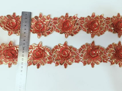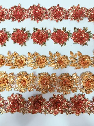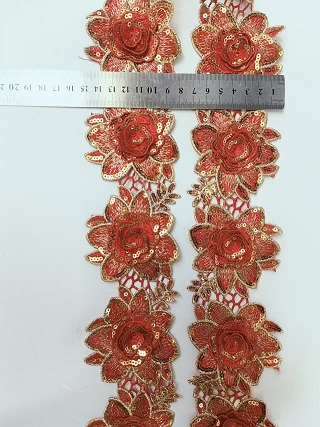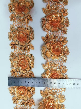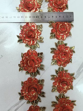 Congregentur 3D Sequanin Polyester Pinxe Lacedaemonium Trim est saepe usus est ad ornamentum accents in hemlines, manicas et bodas de coquit, tum in fashion accessiones talis ut clutch sacculos. Hoc genus Lacrimosa Trim est quoque vulgaris arbitrium pro nuptialem coquit et pronuba coquit.