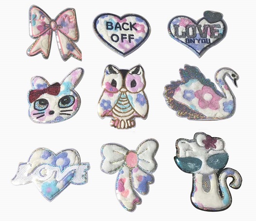 Hairy patch cum sequins est genus exornantur ornatus quod est saepe usus est in indumentis, accessiones et domum decor items. Hoc lacus propria est per se hirsutam textura, quae est creata per usura diu, synthetica fibris, quae sutilis onto a tergum materia.