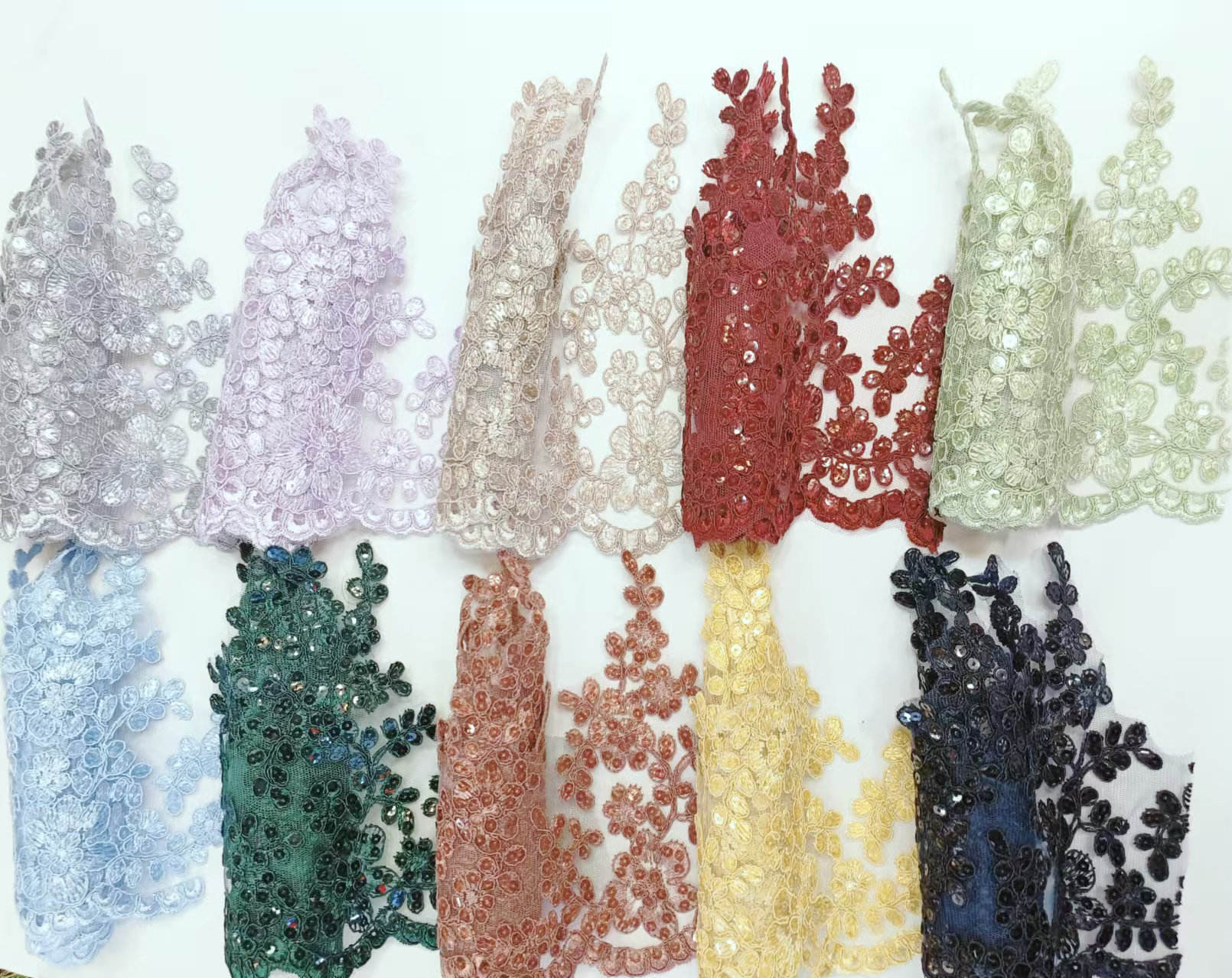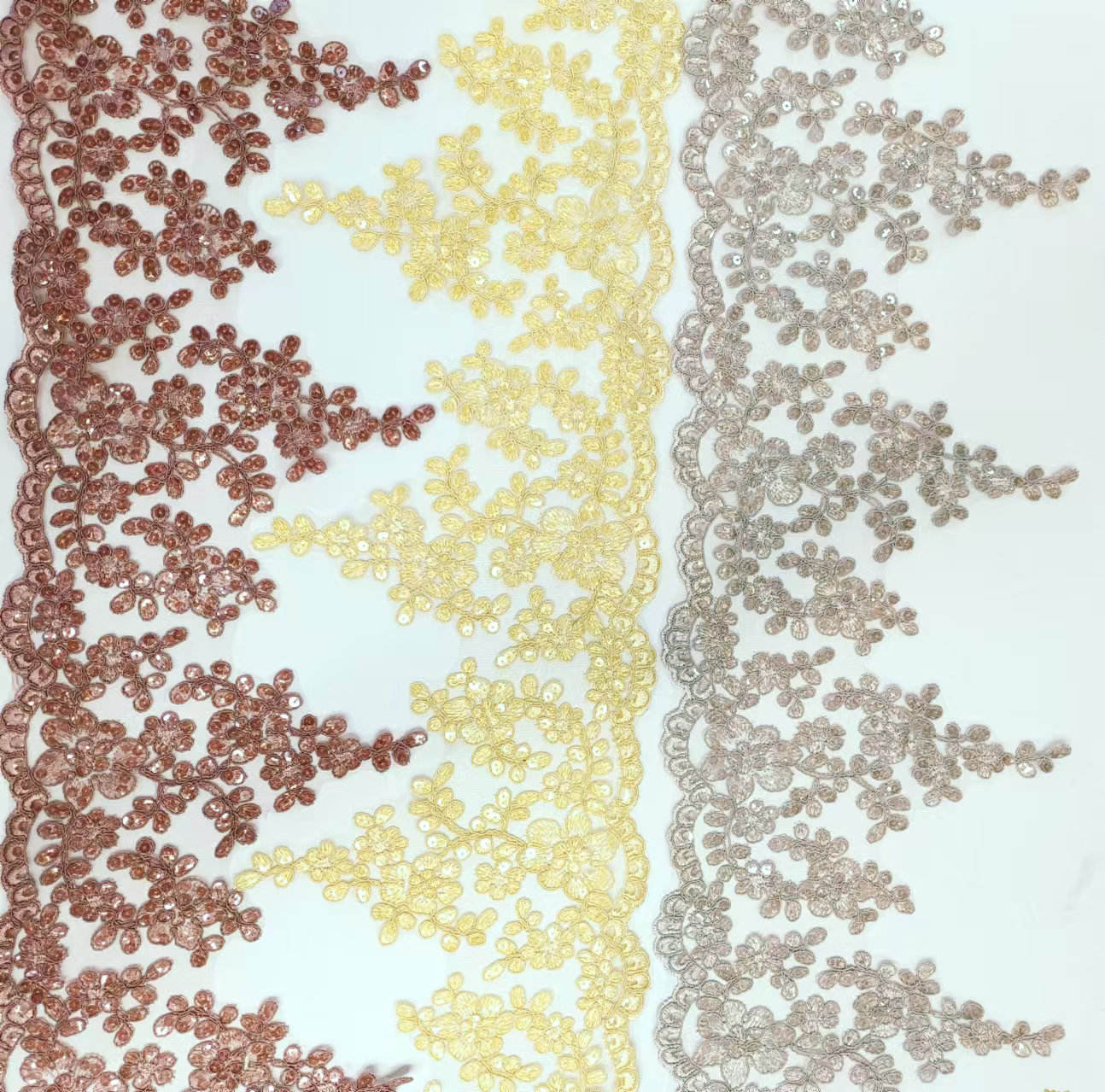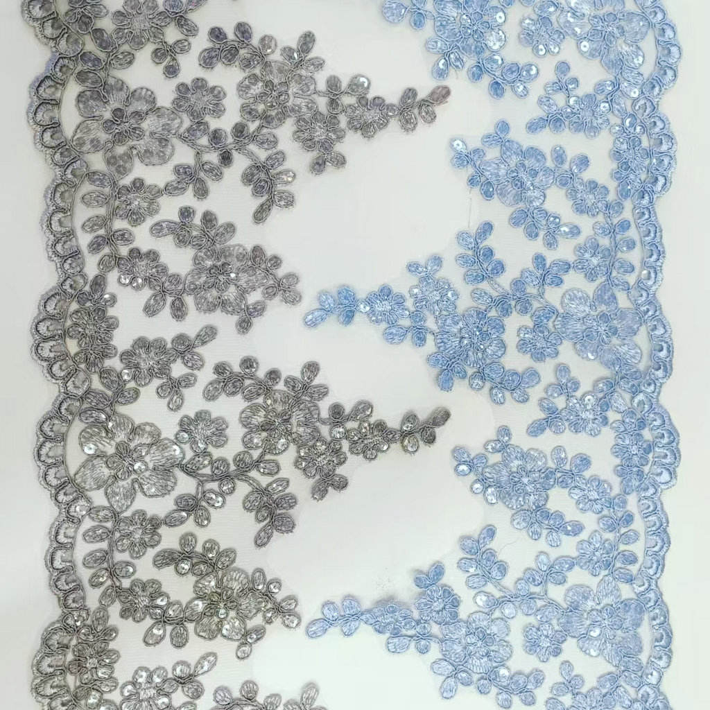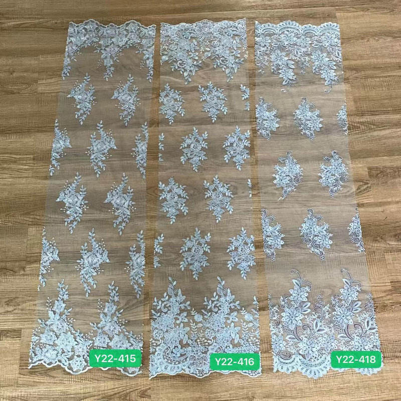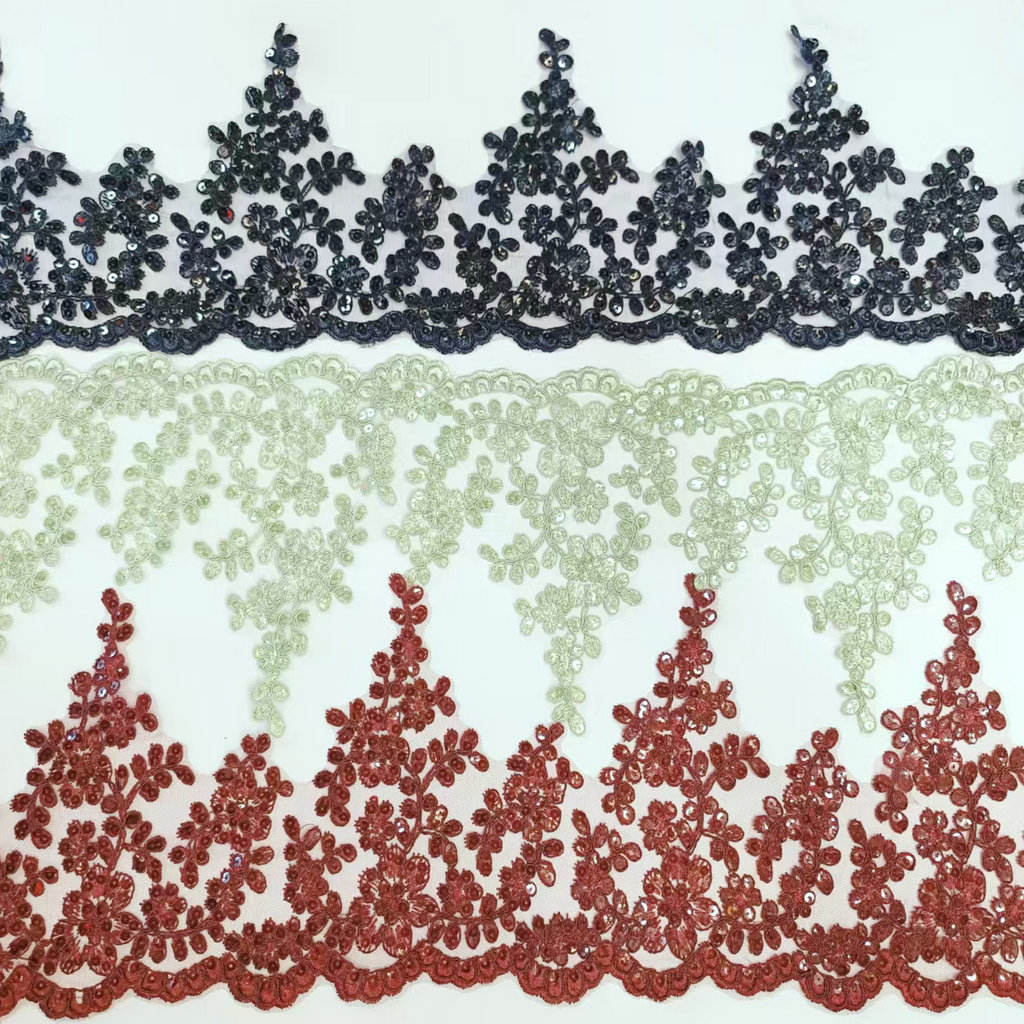 Luxury Bridal French Lace Sequined Wedding Dress Border Lace for Wedding Lace featuring a high-end French lace base, hand-stitched shiny sequins, the patterns are exquisite and three-dimensional, with a light and smooth texture. High-finem ornatus specie disposito pro nuptialem coquit et ad vesperam togis, available in eburneus alba, Campanie aurum et alias tones, subsidium more width et exempla, excitare luxuria et venereum style