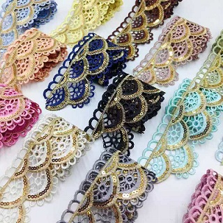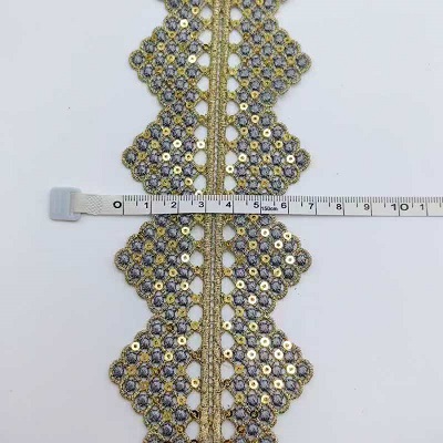 Loticolor Aurum Thread Lace Trim cum sequin est saepe solebat addere tactus luxuriae et ruditatis et indumentis items ut cocktail coquit et blouses