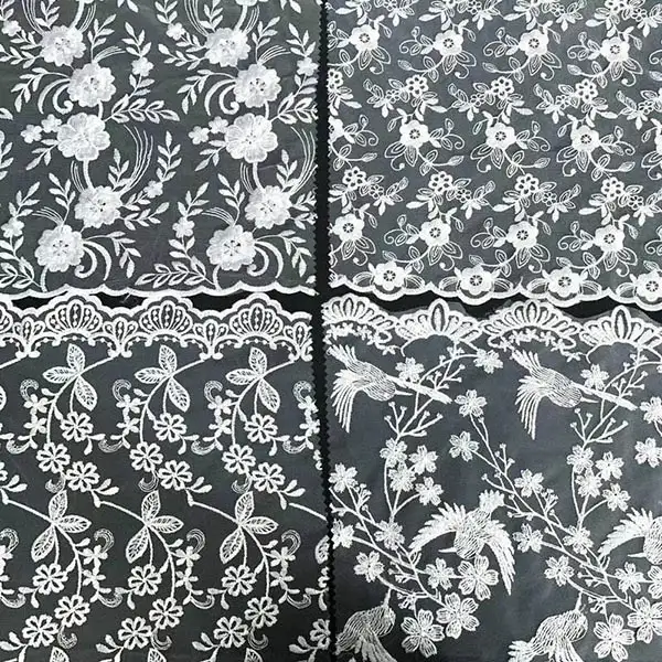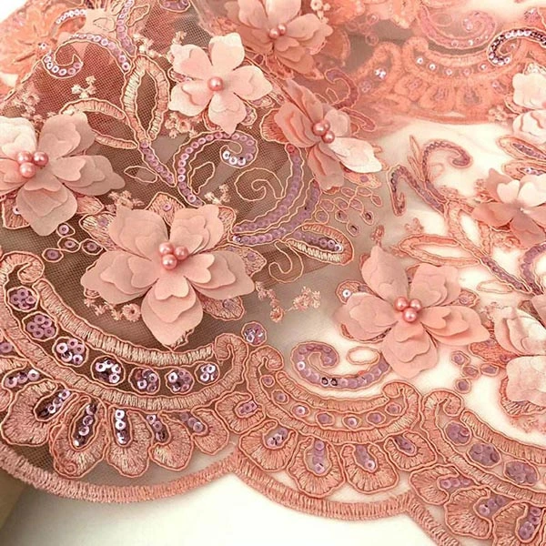 Wholesale Beautiful 3D Flower Beaded Cheap Textile Embroidery Fabric Swiss Voile Lace Trim 2021